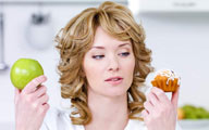 She has to choose to take the apple or the cake.