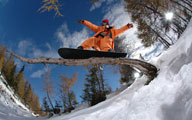 He jumped on a branch with his snowboard.