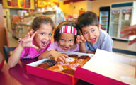 The waitress leaves and returns with a nice children's menu with games and drawings in it.