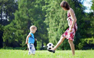 My son plays ball with me.