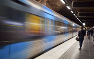 To leave: The train leaves the station.