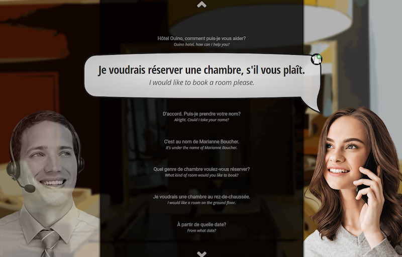 In the Conversation module, you will learn how to put everything together. We have designed 40 conversations that are very common in everyday life. They use things you will learn in Ouino, as well as other aspects of conversation such as expressions and idioms, which may not be used as much in writing. These conversations were designed to be simple and to teach you a lot within one conversation. Again these can be used in any order. If you are going to the restaurant, take the restaurant conversations. If you are going to the airport, take a look at the conversations on transportation.