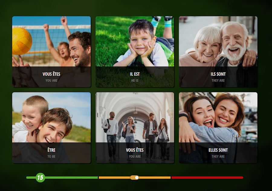 Conjugation match: These exercises will get you engaged with the full conjugation of the verb. You will match the verbs with their corresponding personal pronouns. You’ll quickly notice repeating patterns within the verbs and start using the conjugation for yourself.
