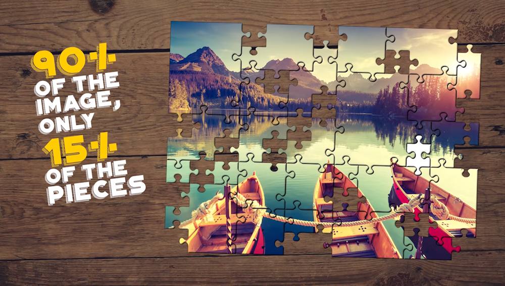 Imagine you are putting together a huge 20,000-piece jigsaw puzzle. In this puzzle, none of the pieces are the same size. How would you get started? Your instinct will likely be to start putting the extra-large pieces together, right? Exactly. Once you have the 3,000 biggest pieces of the puzzle together, you can now see 90% of the image, but have only 15% of the pieces together. You can now recognize the image, but completing the rest of the puzzle will allow you to see the true beauty of this masterpiece.