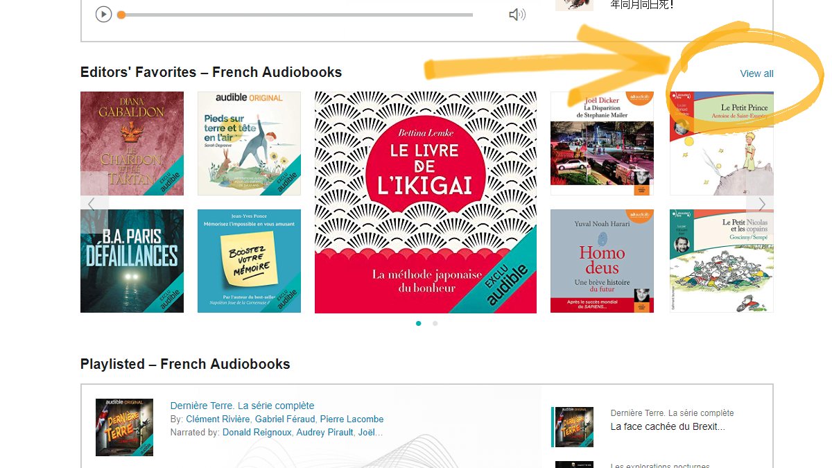 Scroll to find your target language and click View all on the right to see the full list of available audiobooks. We’ve chosen French for the purpose of this post. At the time of writing this, there were 10,842 French audiobooks! Plus, new ones are added every day.